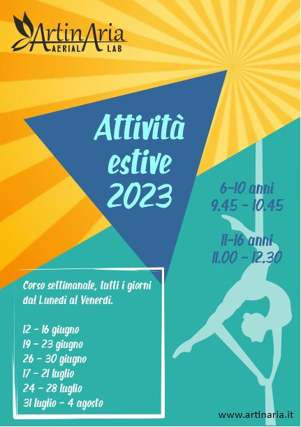 Anche quest’anno Artinaria propone per i piccoli e grandi acrobati dei corsi estivi intensivi di 1 settimana.