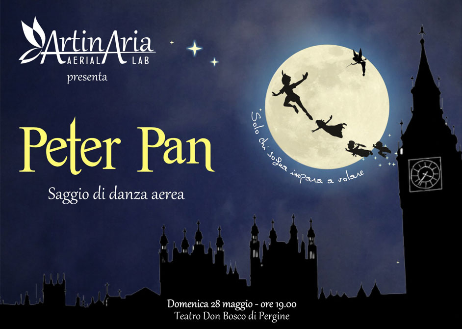 Artinaria Aerial Lab presenta “Peter Pan”, saggio di fine anno che vedrà protagonisti gli allievi dei corsi che si sono svolti durante la stagione, dai più piccoli ai più grandi.